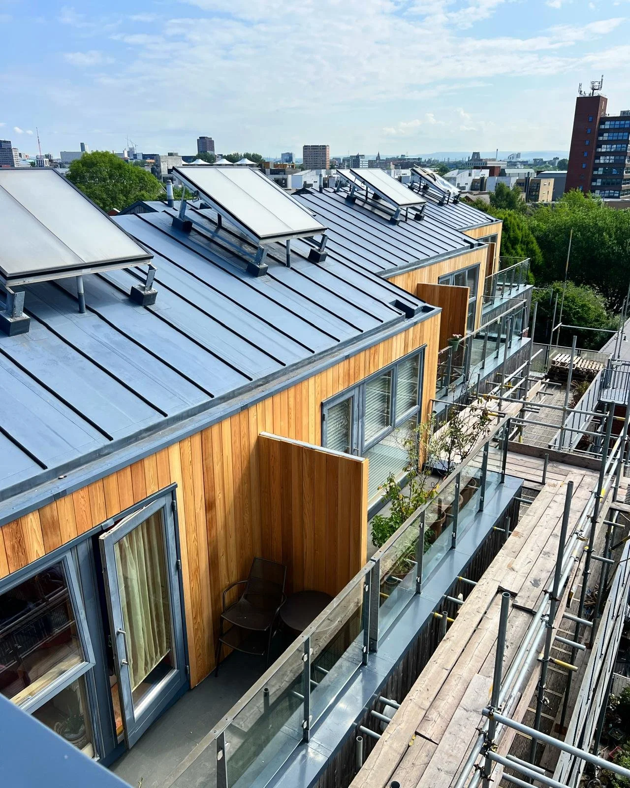 As part of the refurbishment, new cedar cladding and aluminium cappings were installed to the balcony perimeters, providing both a durable waterproofing detail and an improved architectural finish. The PMMA system was selected for its fast curing properties and suitability for occupied residential environments.